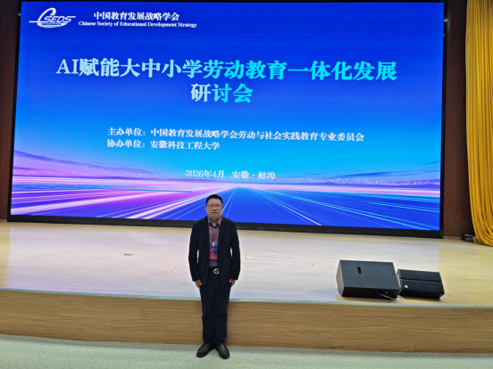 为深入贯彻落实新时代劳动教育部署要求,推动人工智能与劳动教育深度融合,构建大中小学劳动教育一体化育人体系,4月18日至19日,由中国教育发展战略学会劳动与社会实践教育专业委员会主办、安徽科技工程大学承办的AI赋能大中小学劳动教育一体化发展研讨会在安徽科技工程大学龙湖校区举行,我校教务处副处长李应华应邀参会。