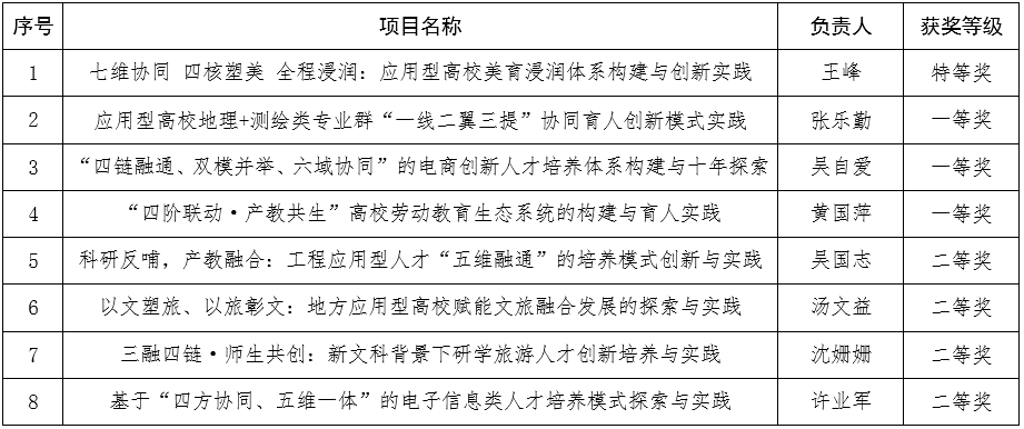 近日,安徽省教育厅公布了2025年省级教学成果奖获奖名单。学校取得优异成绩,申报的8项教学成果全部获奖,其中特等奖1项、一等奖3项、二等奖4项,获奖在省属本科院校中名列前茅。